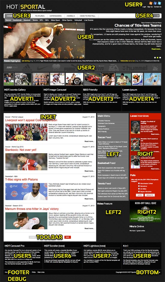 Hot Sportal Template Features