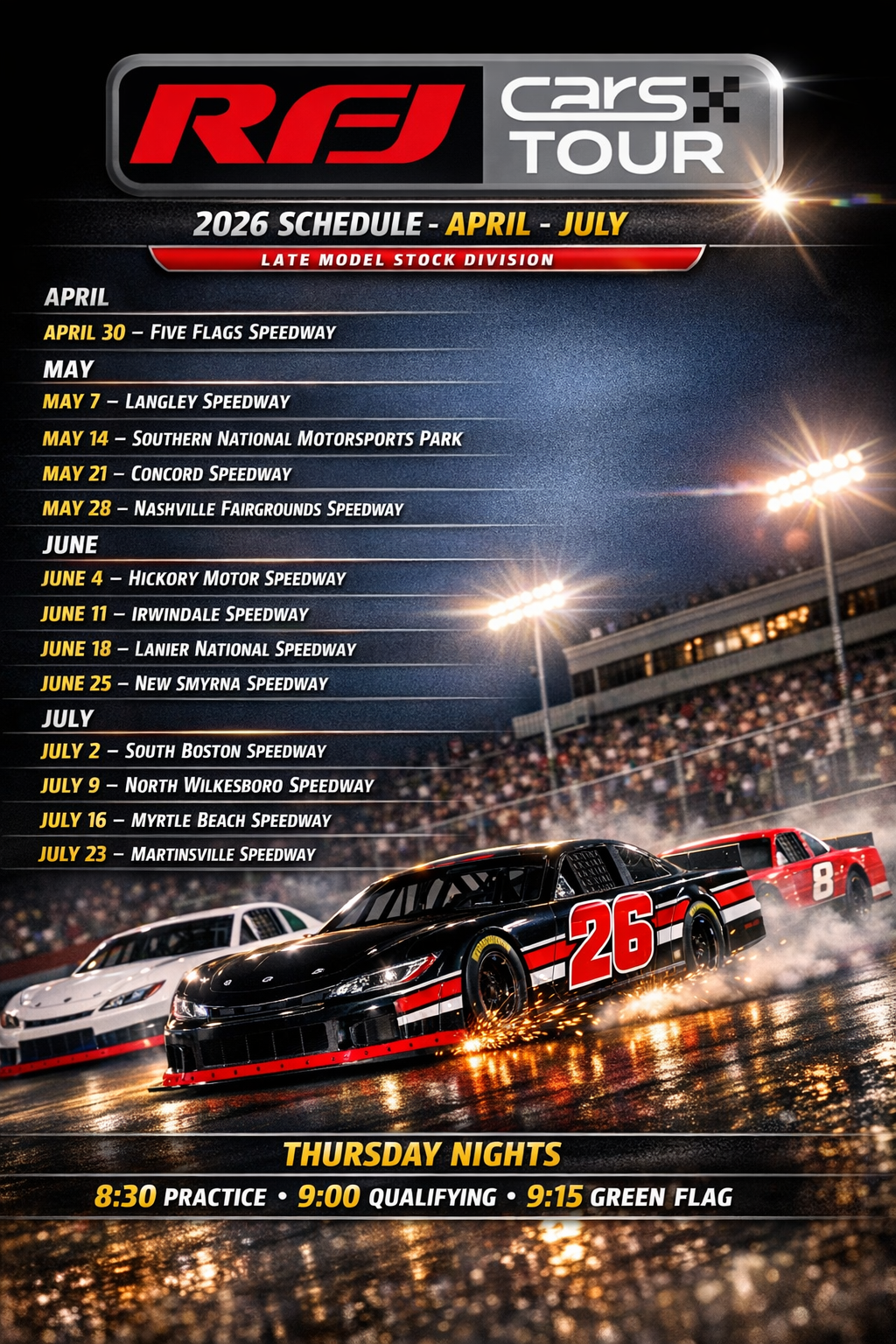 RFJ Cars Tour Late Model Series Spring/Summer Schedule 2026